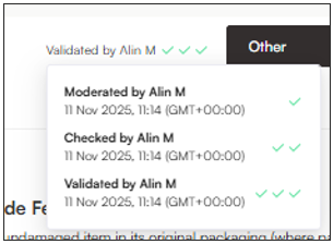 If a user of QA role moderates items, this results in the item automatically being of status ‘QA Checked’