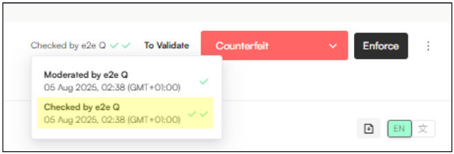 Check & Enforce → Marks the item as quality-checked and flags it for enforcement.