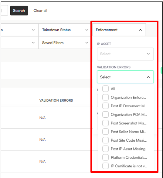 To identify any issues, Enforcers can use the Validation Errors filter: