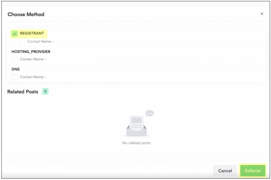 Select the entity/entities to enforce (e.g., Registrant, Registrar, DNS).