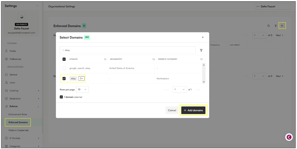 If the Enforce button does not appear for Posts & Accounts, make sure to configure the related domain in the Enforce Domains section.