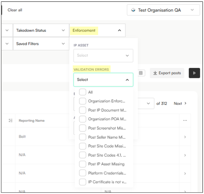 This highlights posts missing key enforcement elements or with incorrectly populated fields.