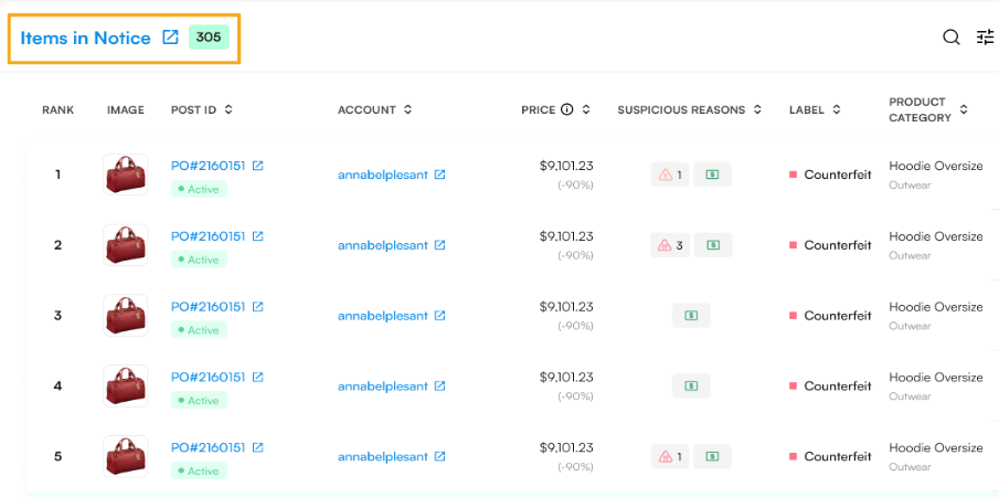 Number of Items/Posts – Displays how many infringing listings are included in the notice.