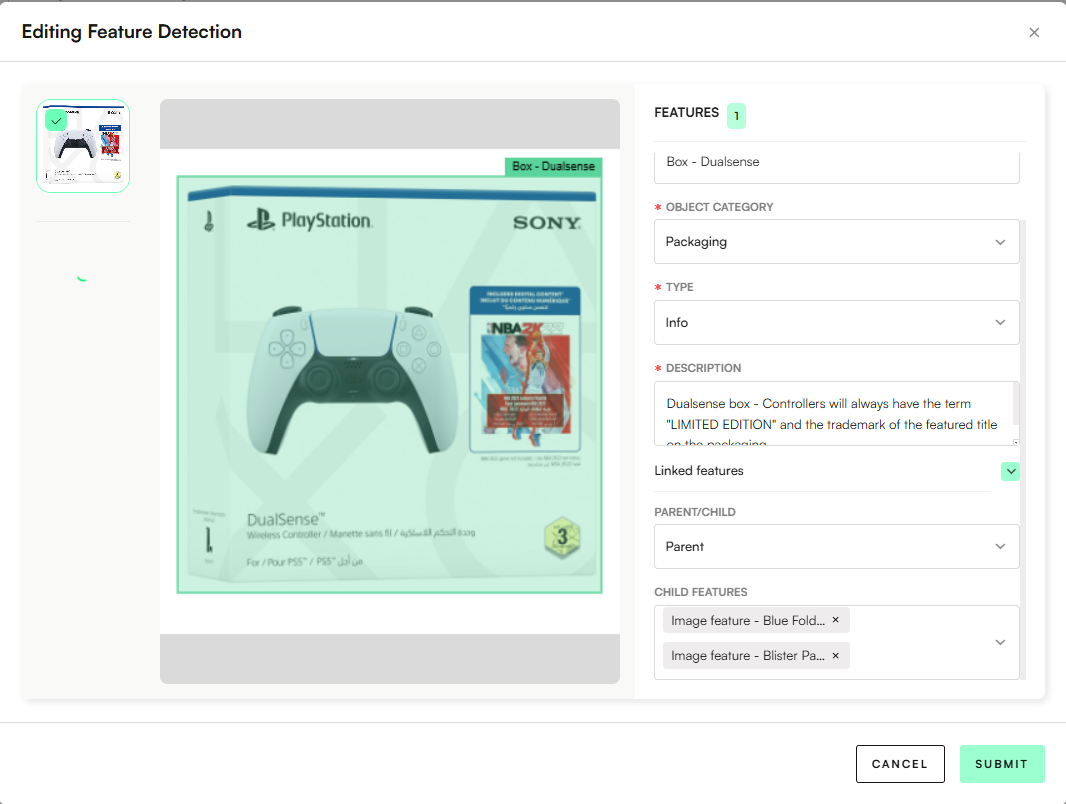 Once saved, this feature can be selected in auto-moderation rules (for example, “If image shows Blister Packaging – Cheap and not Box – DualSense, flag as potential counterfeit”).