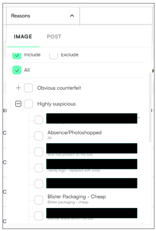 Once configured, users can filter for these image reasons in the Reasons filter across all views:
