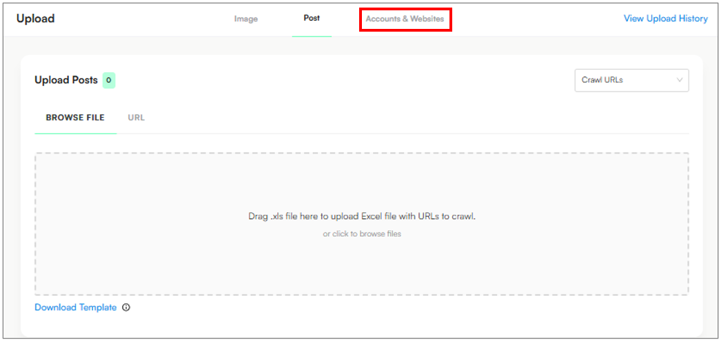 The Accounts section on the Uploads page has been renamed to Accounts & Websites to reflect both upload types.