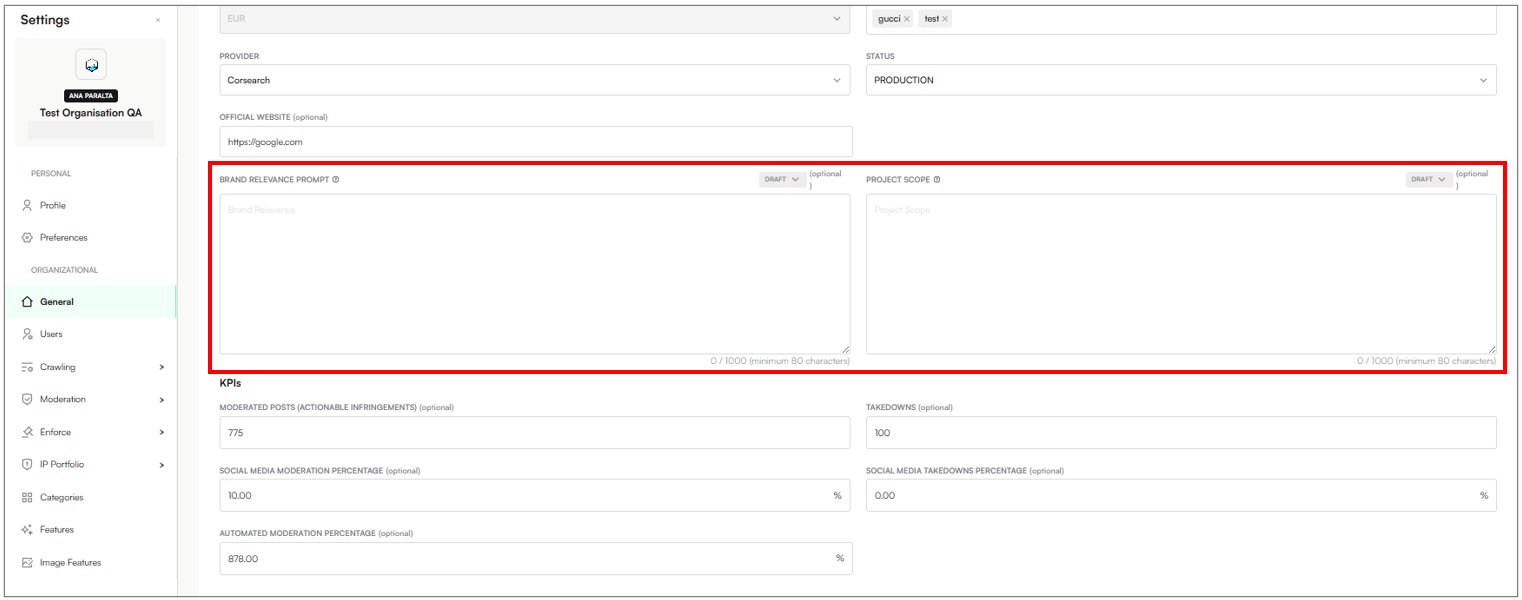 Define and manage Brand Description & Project Scope directly in Zeal Settings for better clarity and control on the brand protection focus.