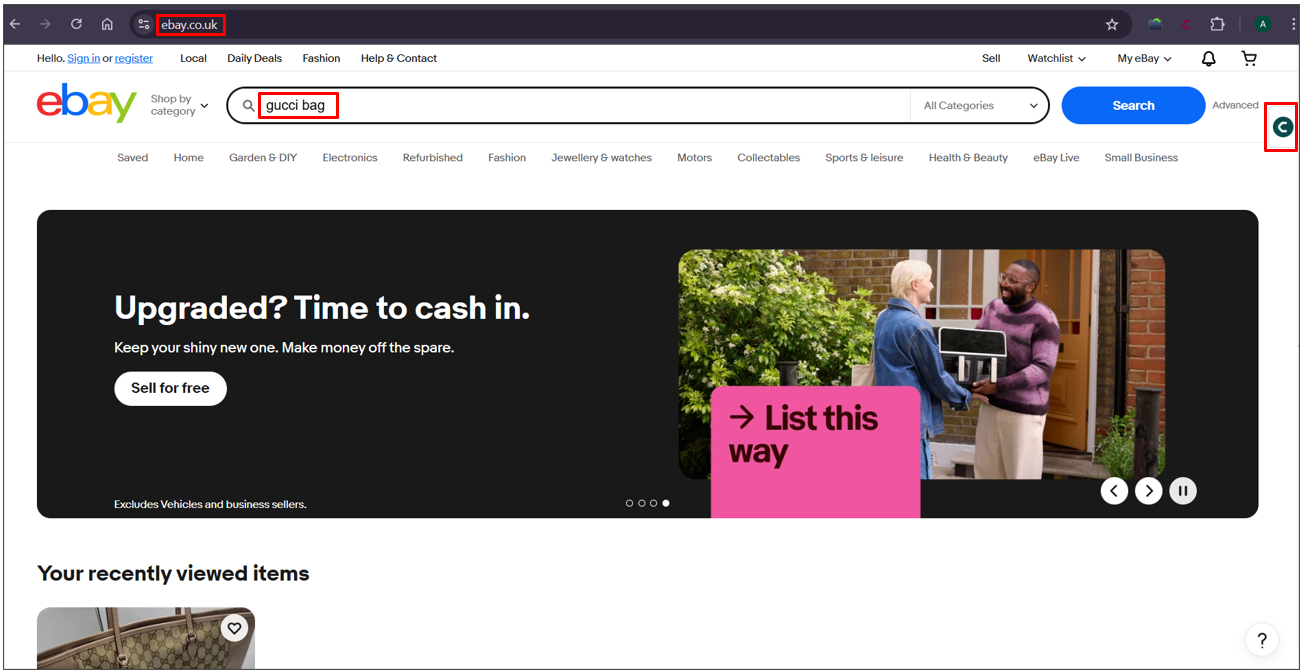 Go to a domain/platform of your choice (e.g: ebay.co.uk).