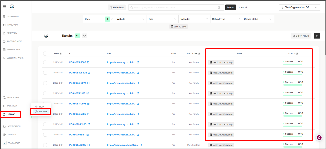 4. Identify uploads sourced through Cyborg.