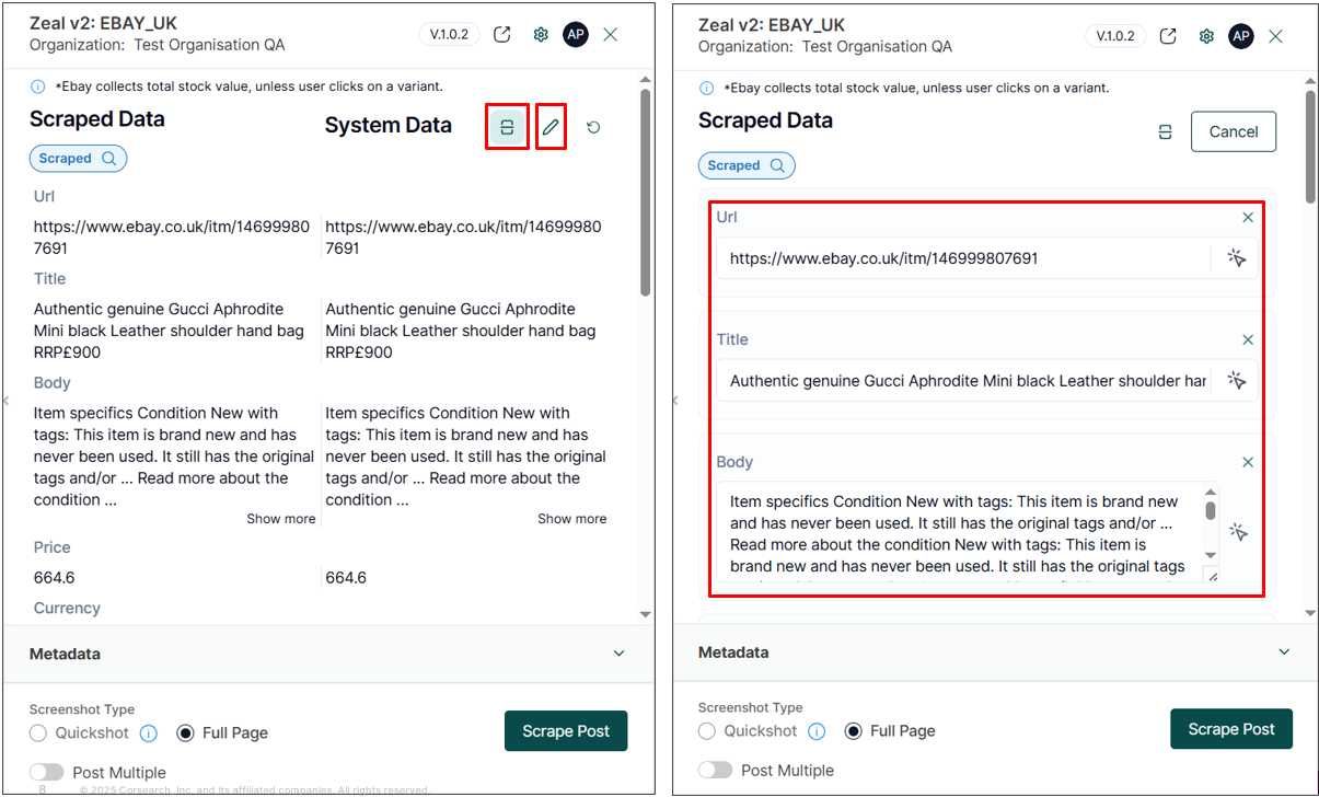 Note: Users can click System Data tab to see what information has already been scraped into Zeal 2. Users can also click the pencil icon to edit the scraped information: