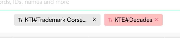Searching Core and Brand Protection as separate inputs will match entries containing either “Core” or “Brand Protection”.