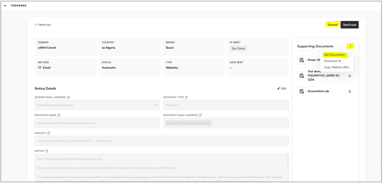• You can now mark an IP Certificate as Shopee Compatible, making it easier for the system to use the right documents during Shopee enforcement.