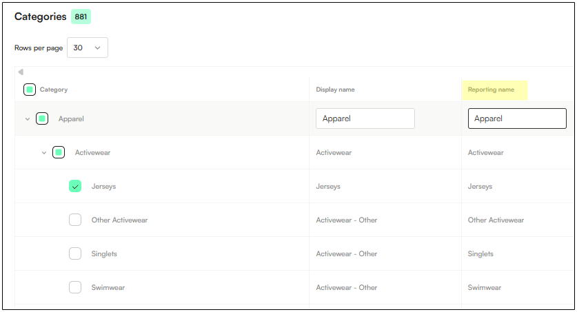 Can match the display name or be adjusted to consolidate multiple categories under one reporting label.