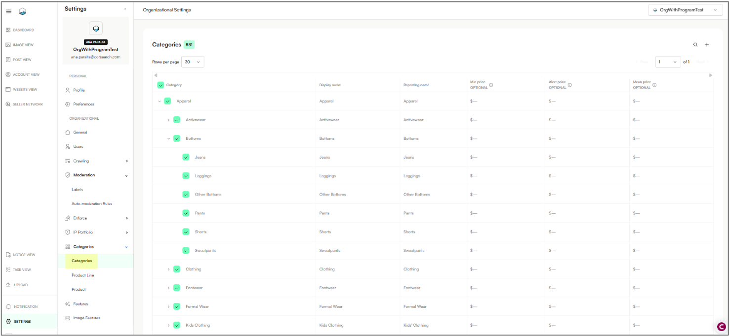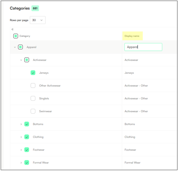 Note: Users can customize display names to match their preferred naming conventions. If a specific theme or category is missing, the category tree can be updated and category names edited accordingly.