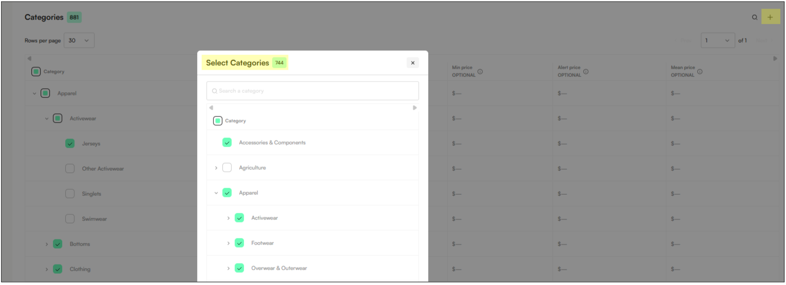 Click the plus (+) icon in the top-right corner of the Categories screen.