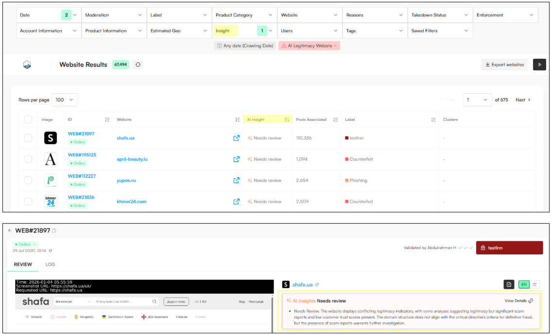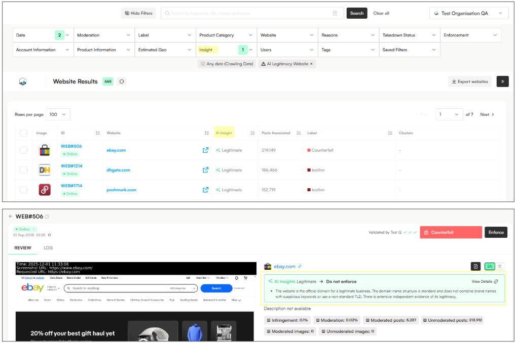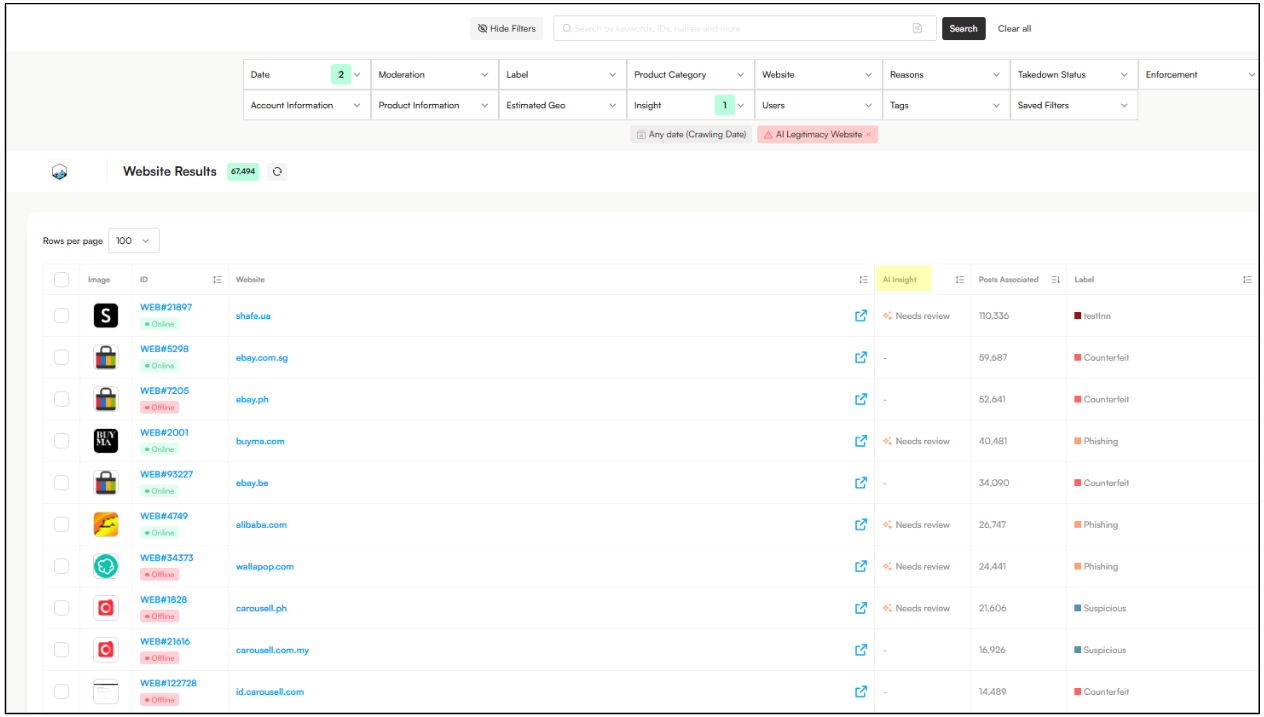 We’ve added a new Website Insight filter to help you quickly separate legitimate websites from those that may pose a higher infringement risk.