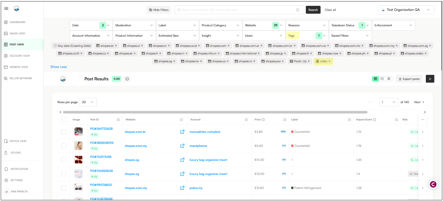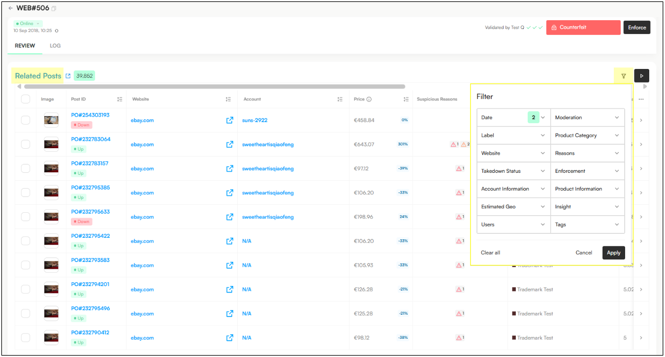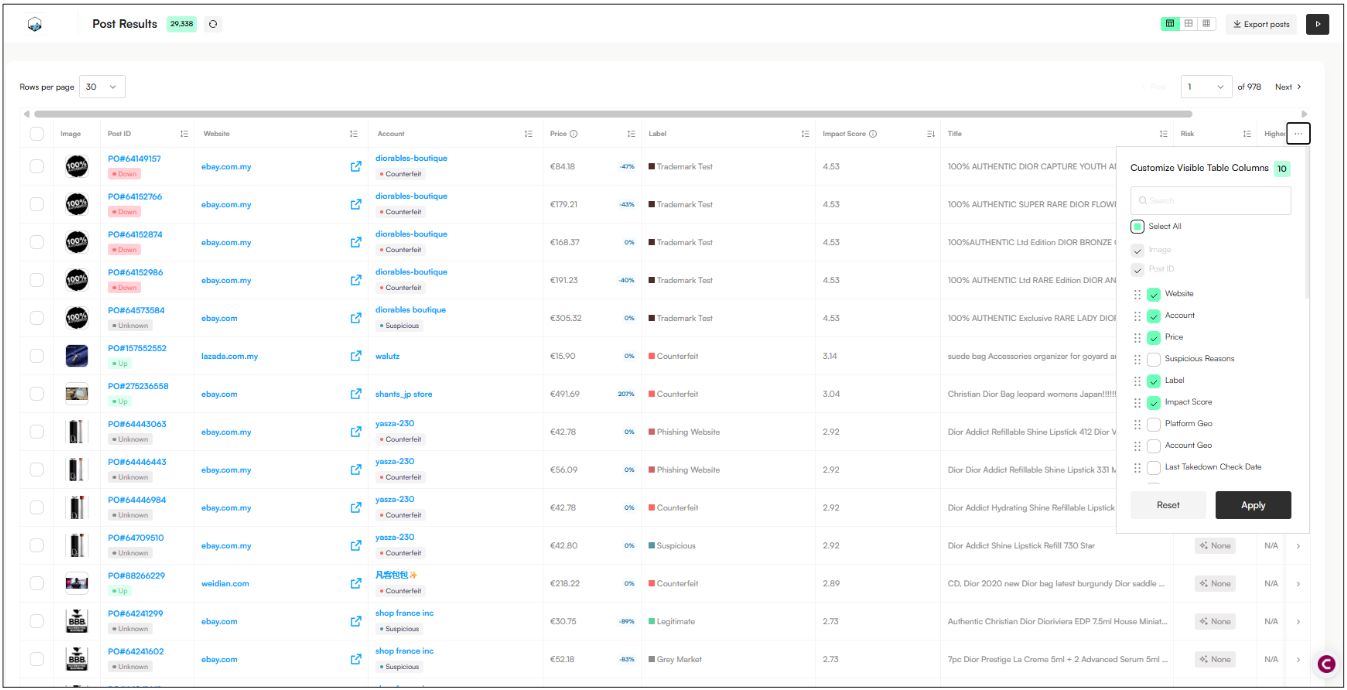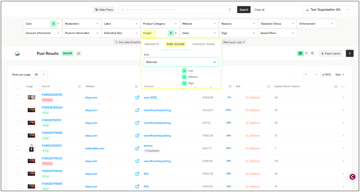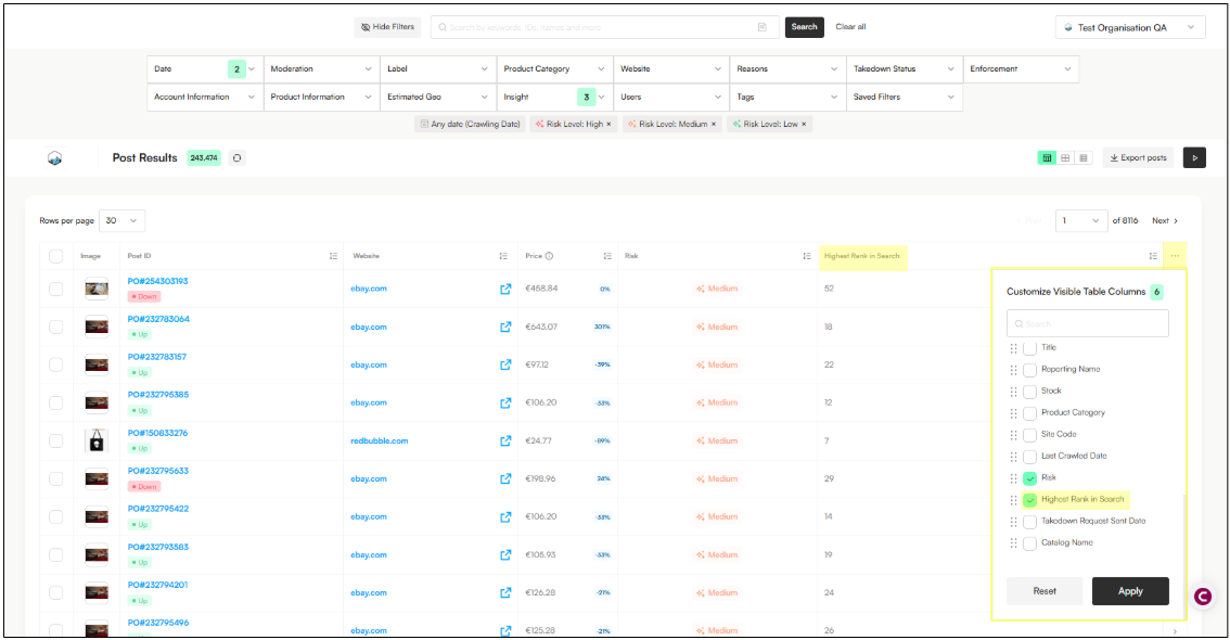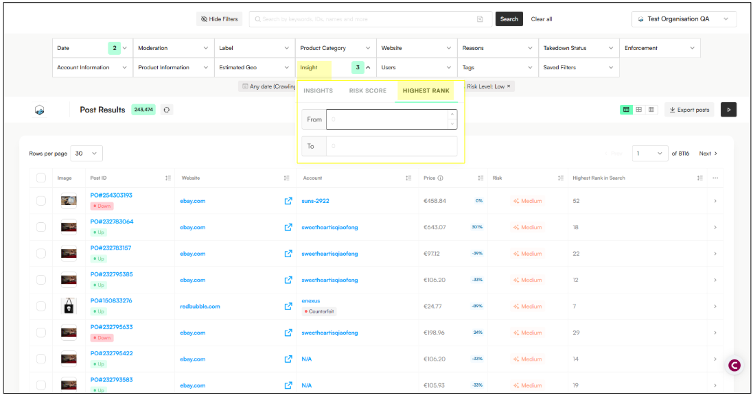 You can now identify and prioritize posts based on Risk and posts that appear high in search results, helping you focus on the most visible and impactful infringements.