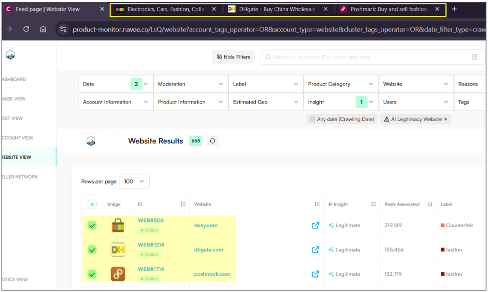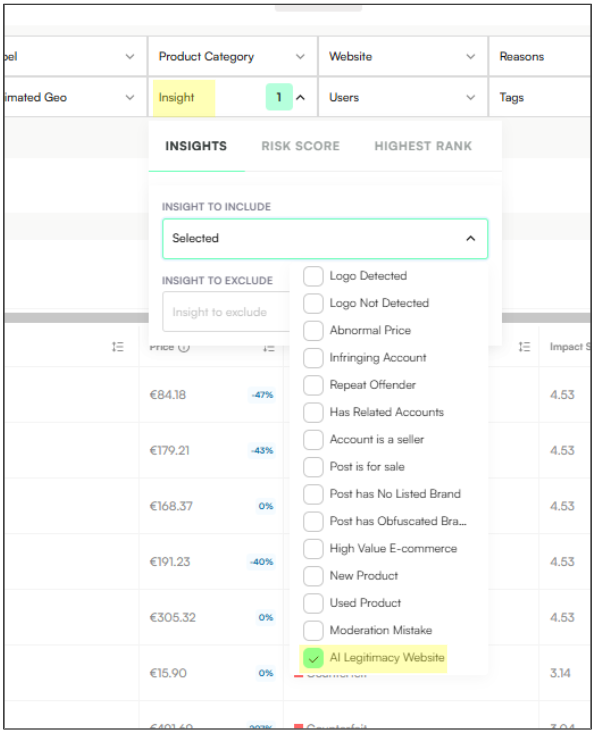 Note: Use the new filter under Insight → Include/Exclude → AI Legitimacy Website