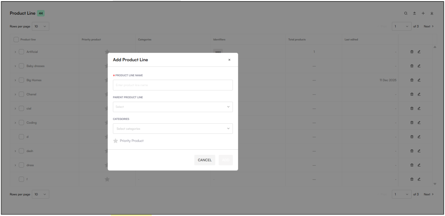 Add, edit, and view Product Lines
