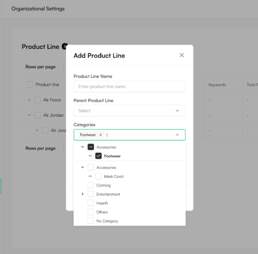 The Product Category dropdown when adding a Product Line has been updated for a clearer, more consistent setup experience.