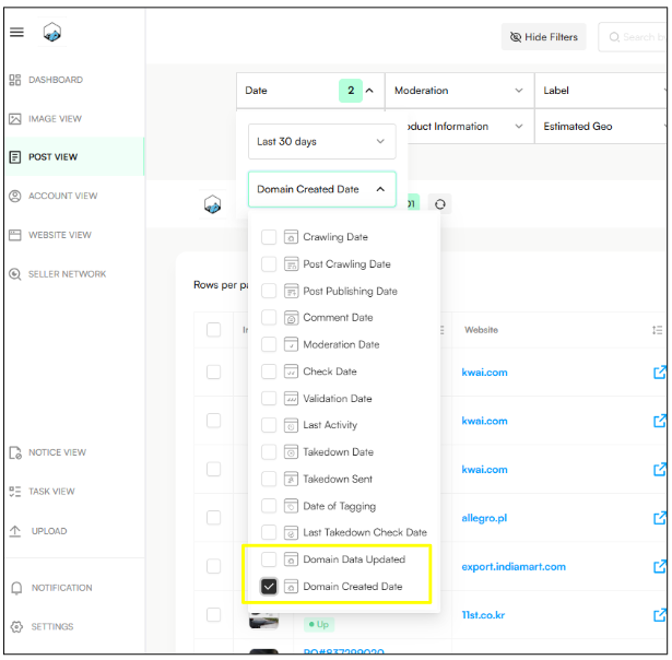 You can now filter Posts and Websites that are marked for enforcement — all in one place.