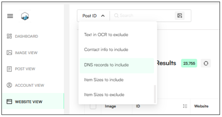 You can now use the search bar to search for specific terms within Website DNS records (Website View).