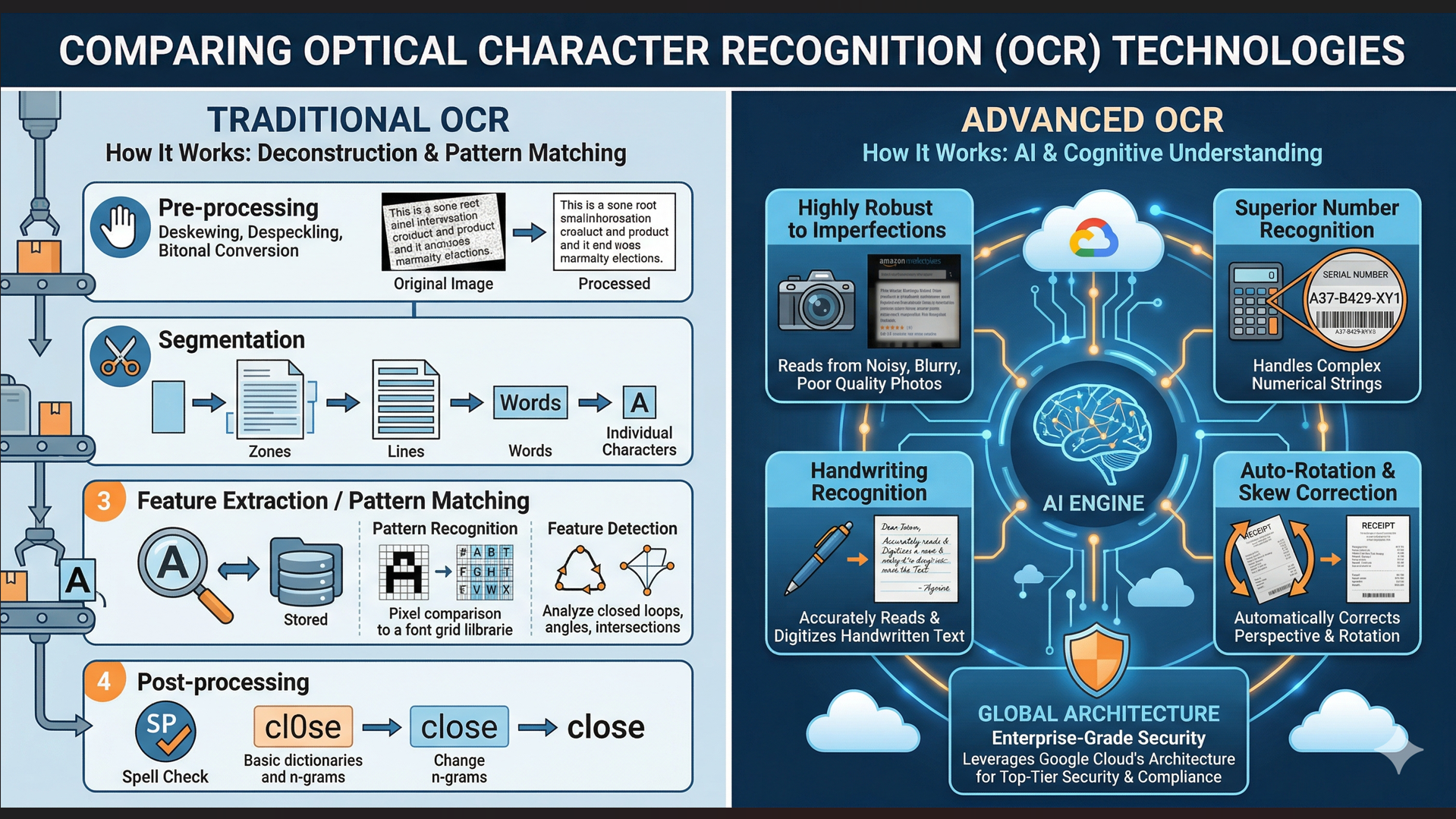 Feature | Traditional OCR | Advanced (AI) OCR |