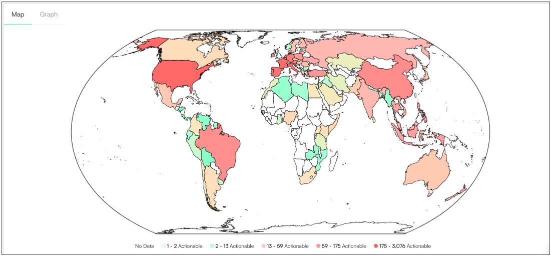 Graph – Shows the breakdown and variation of infringements around the world in the last 12 months.