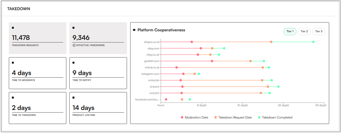 Takedown Statistics: See platform responsiveness and overall enforcement efficiency.