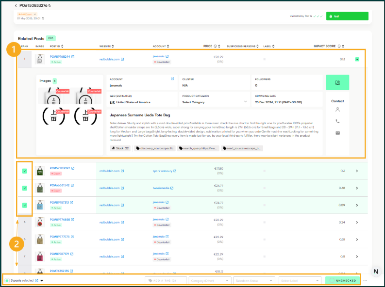 Impact Score – A number showing how likely a post is to infringe. Higher scores mean higher risk.