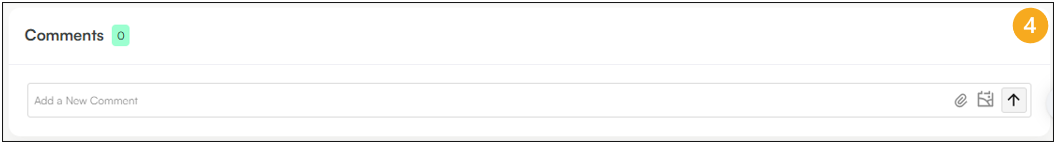 Comments – @username + your message, click the arrow to post, and use the paperclip icon to attach files or images.