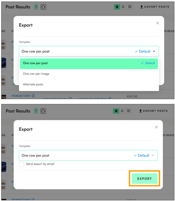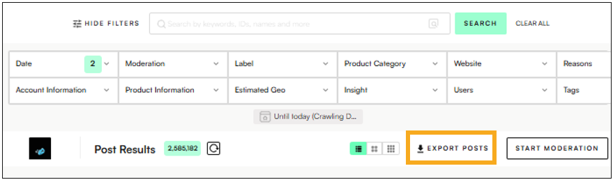 Click the Export button (e.g. Export Posts, Export Accounts, etc.).