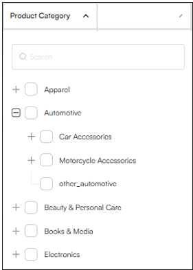 Product Category Filters allow users to narrow results by product categories that have been set up in the Settings page. These categories are fully customizable and help tailor monitoring and reporting to the brandโs portfolio.