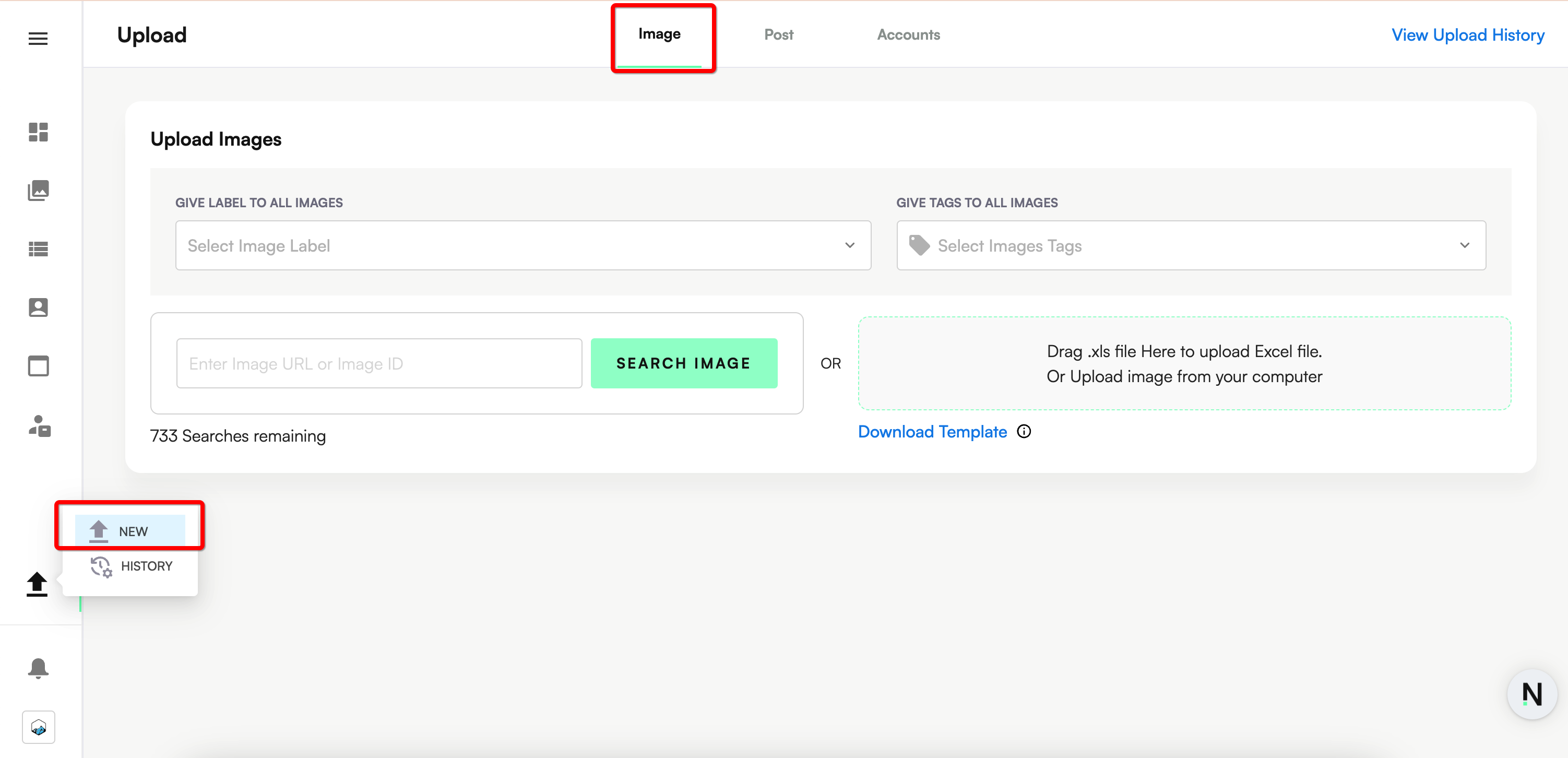Enter each individual image URL OR utilize the Excel option for bulk upload OR you can select many images from your computer to bulk upload (click on the gray box).