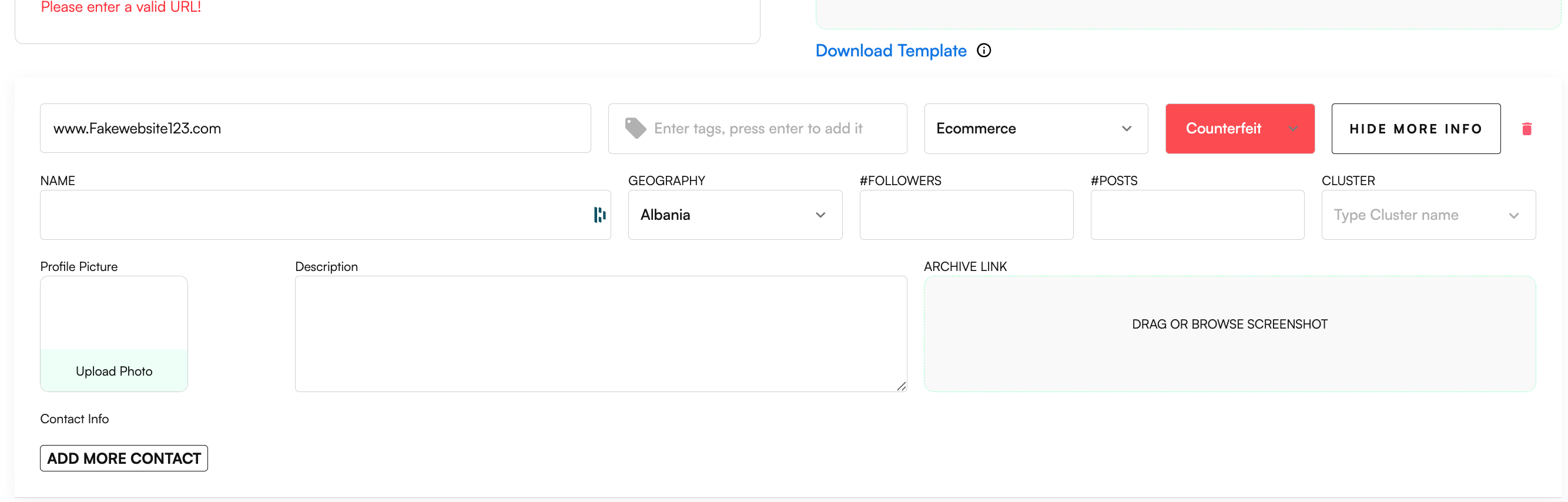 4. Click ‘Show more info’ to populate all other relevant information, including the geography of the website, Website Name, relevant contact details, and a screenshot of the website.