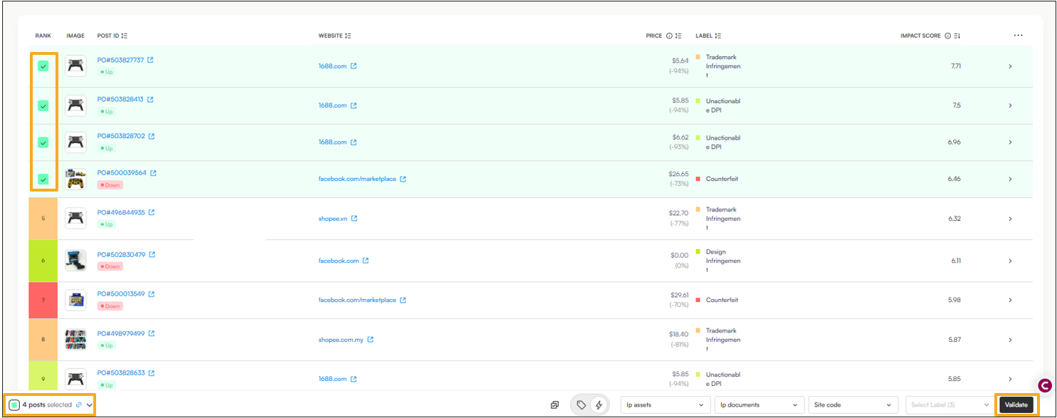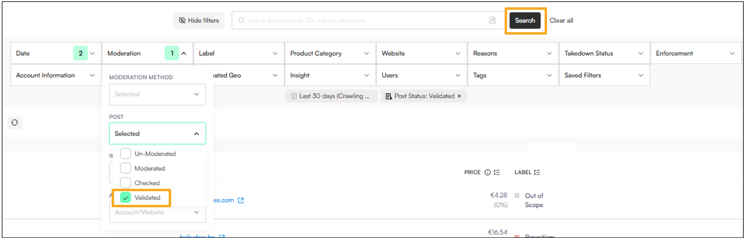 Some enforcement workflows require posts to be validated (reviewed) before enforcement can proceed. This step is typically performed by users with the “validator” role, which are often the client or the brand’s legal partners.