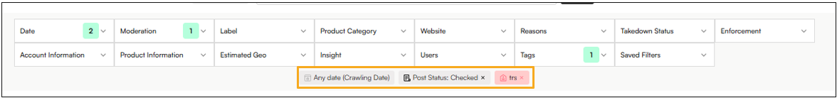 Note: Your Corsearch team will already have Saved key filters aligned with your brand protection program, but you can always create additional ones based on your needs.